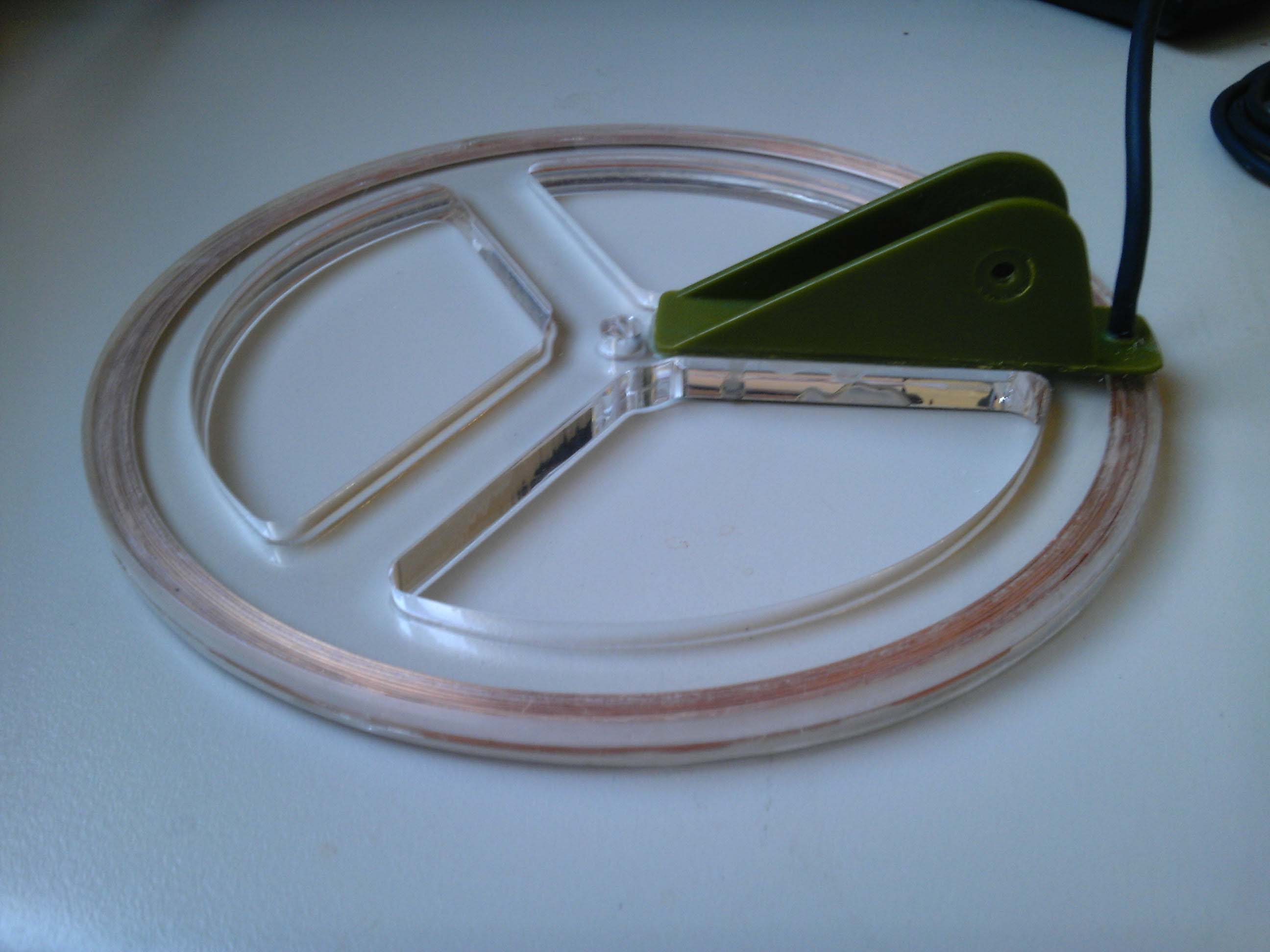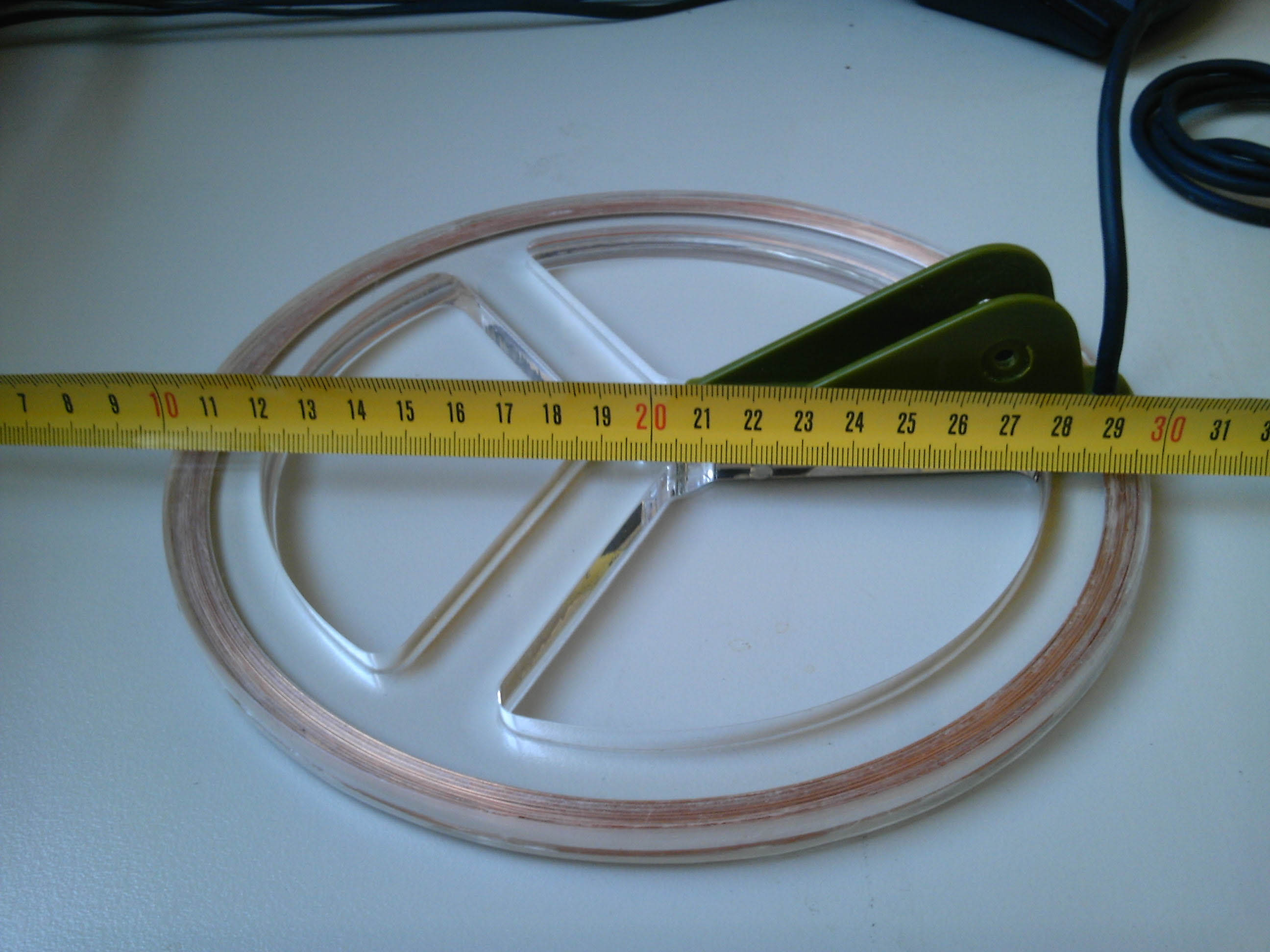 Bei der Spule hat man viele Freiheiten, man muss nich nur an den Durchmesser, die Windungszahl und die Drahtstärke halten. Ich lies mit aus Plexiglas Rohlinge lasern, und drehte in den Umfang eine Nut. Dort wickelte ich den Draht hinein, vergoss alles mit Epoxidharz und brachte außen noch einen Schutz aus einem aufgeschlitzten Silikonschlauch an.